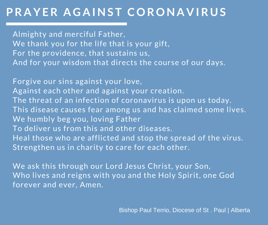 - As a sign of unity, parishioners are invited to say the below Prayer Against Coronavirus, personally or as a family, everyday at 7:00 p.m. Click image below to enlarge.
